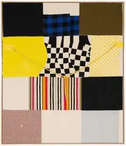 Critics situate Guerrero-Maciá's work at the intersection of painting, fiber, design and conceptual art traditions, noting its blurring of such boundaries and refusal of binaries such as "high" modernism or craft, formal severity or kitsch playfulness, geometric, hard-edged or biomorphic, pliable forms, the metaphysical or quotidian.[23][6][3][7] She works in two- and three-dimensional media, with a long history of hybrid techniques including collage, assemblage, sewing and dyeing, sampling and appropriation inspired by the work of artists such as Robert Rauschenberg and the Pattern and Decoration movement.[21][3][7]
