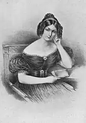 Pierre had raved of Diana's charms to the king, which awakened Jérôme's interest; his advances were initially resisted, as Reinhard pointedly noted in a letter dated 10 August 1809. However, in March 1810 Diana travelled with the royal couple to Paris for Napoleon's wedding to Archduchess Marie Louise of Austria. Her husband did not attend. On 7 September 1811, Diana gave birth to a daughter, Jeromée Catharina. Jérôme himself held her at her baptism, but because their marriage still stood, Wilhelm Rabe von Pappenheim acknowledged her as his own legitimate daughter.[3] Known better as Jenny von Gustedt, she would later become the grandmother of the women's rights activist and writer Lily Braun (1865–1916).
