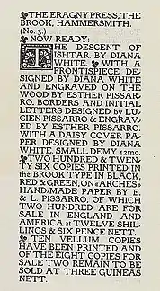 - Pissarro, Lucien; White, Diana; Pissarro, Esther (1903). The descent of Ishtar. London : Eragny Press; New York : John Lane.