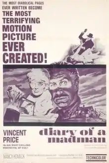 Diary of a Madman is a 1963 American horror film directed by Reginald Le Borg and starring Vincent Price, Nancy Kovack, and Chris Warfield.[1]