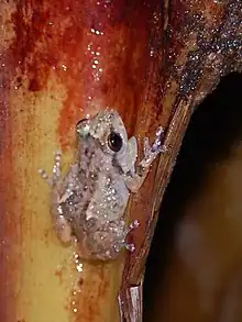 Diasporus diastema is a species of frog in the family Eleutherodactylidae.[2] Common names include common tink frog or dink frog, supposedly because of the loud metallic "tink" sound that the male frog makes during the night.[3] It is found in Central America, from Honduras through Nicaragua and Costa Rica to Panama.[1][2] Its natural habitats are tropical humid lowland forests and montane forests, but it can very disturbed habitats. It is found from sea level to 1,620 m (5,310 ft) elevation.[1]