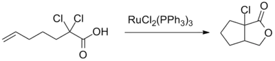 RuCl2(PPh3)3 facilitates oxidations, reductions, cross-couplings, cyclizations, and isomerization. It is used in the Kharasch addition of chlorocarbons to alkenes.[8]