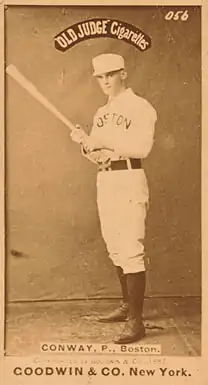 Conway was 21 years old when he entered the majors in 1886 with the Baltimore Orioles, playing for them one year before joining the Boston Beaneaters (1887–1888). While playing for Baltimore, Conway entered the baseball record books with his older brother and batterymate Bill Conway, the pair becoming one of 16 pitcher/catcher sibling combinations in major league history. His most productive season came in 1887, when he collected career-numbers in wins (9), starts (26), and innings pitched (222+1⁄3).