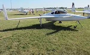 The aircraft is based upon the Rutan Long-EZ. It features a cantilever mid-wing canard layout with tip rudders, a two-seats-in-side-by-side configuration enclosed cockpit under a bubble canopy, fully retractable tricycle landing gear and a single engine in pusher configuration.[1]