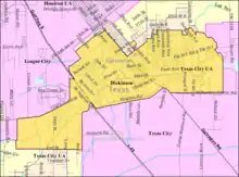 Dickinson is a city in Galveston County, Texas, within Houston–The Woodlands–Sugar Land metropolitan area. The population was 20,847 at the 2020 census.[2]