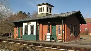 The Emily Dickinson House, built in 1813, is the oldest house within the district, with prominence beyond its association with the poet. Her grandfather Samuel, who built the house, was a founder of Amherst College, and a prominent local politician, as was her father Edward. Her brother William Austin Dickinson was also active in the political and economic life of Amherst, helping found its water and gas companies. Leonard Hills, who lived in two separate houses in the district, ran a distinctive business that manufactured hats out of palm leaves, and was a key figure in the founding of Massachusetts Agricultural College (now the University of Massachusetts at Amherst). The district also includes Amherst's Gothic First Congregational Church (1867), and the brick Italianate Central Vermont Railroad depot (1853), one of the oldest surviving railroad stations in the state.[2]