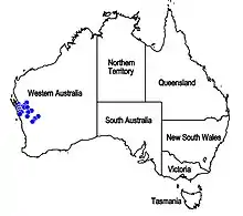 It is found in Beard's Eremaean and South-West Provinces.[1]