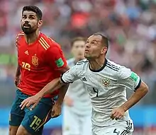 Diego da Silva Costa (Spanish: [ˈdjeɣo ða ˈsilβa ˈkosta], Portuguese: [ˈdʒjeɡu dɐ ˈsiwvɐ ˈkɔstɐ]; born 7 October 1988),[4][5] commonly known as Diego Costa, is a professional footballer who plays as a striker for Premier League club Wolverhampton Wanderers.