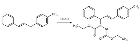 The azo group in DEAD is a Michael acceptor. In the presence of a copper(II) catalyst, DEAD assists conversion of β-keto esters to the corresponding hydrazine derivatives.[21]