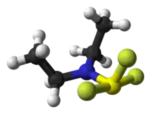 Diethylaminosulfur trifluoride (DAST)[2] is the organosulfur compound with the formula Et2NSF3. This liquid is a fluorinating reagent used for the synthesis of organofluorine compounds. The compound is colourless; older samples assume an orange colour.