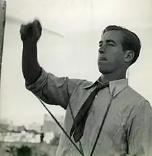 After moving to Helsingborg with his family in 1929, he was stricken with polio and rheumatic fever within two years of moving there.[6] Even after overcoming these afflictions, a train accident at the age of 20 shattered his right knee, leaving him nearly incapacitated and questioning his future.[7] In the aftermath of his surgery, he recalled an ad he had seen in the back pages of the Saturday Evening Post for study at the American Academy of Art in Chicago and resolved to chart a new course by moving to America to pursue his childhood dream of becoming a fine artist.[8]