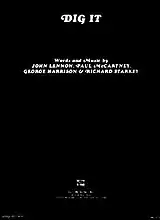 "Dig It" is a song by the English rock band the Beatles from their 1970 album Let It Be. The song is credited to Lennon/McCartney/Harrison/Starkey, and is one of the few songs to be credited to all of the Beatles. This song and the 39-second "Maggie Mae" appear on the Let It Be album, but are excluded from the Let It Be... Naked album, instead being replaced with "Don't Let Me Down". Glyn Johns' May 1969 version of the album, then titled Get Back, had a four-minute excerpt of "Dig It", which was later reduced to the much shorter version in the final album.[1]