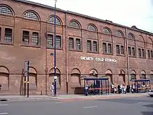 Industry that settled in Digbeth include the Birmingham Battery and Metal Company which moved to Selly Oak around 1876, and Typhoo Tea who had a factory on Bordesley Street which was in use from 1896 till 1978.[7] The now-disused factory has its own canal basin connected to the Digbeth Branch Canal. The Typhoo Tea building, also known as the S Rose & Co Building, is a four-storey building, blue brick at the front (Bordesley Street) and red brick to the rear. Currently vacant, it was previously used as a warehouse.[8] It is soon to become the new HQ for the BBC in the region.[9] Another food industry that settled in Digbeth was Alfred Frederick Bird's custard company that produced a form of custard that did not use eggs. This was invented by his father, Alfred Bird. The factory was set up in the Devonshire Works in 1902 on the High Street.[7] The complex expanded and is now an arts centre. The Devonshire Works themselves are to be refurbished.