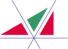 A regular polygon with sides has different symmetries: rotational symmetries and reflection symmetries. Usually, we take here. The associated rotations and reflections make up the dihedral group . If is odd, each axis of symmetry connects the midpoint of one side to the opposite vertex. If is even, there are axes of symmetry connecting the midpoints of opposite sides and axes of symmetry connecting opposite vertices. In either case, there are axes of symmetry and elements in the symmetry group.[4] Reflecting in one axis of symmetry followed by reflecting in another axis of symmetry produces a rotation through twice the angle between the axes.[5]