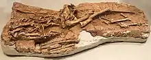 Dilong (帝龍, which means 'emperor dragon') is a genus of basal tyrannosauroid dinosaur.[1] The only species in this genus is Dilong paradoxus. It is from the Lower Cretaceous Yixian Formation near Lujiatun, Beipiao, in the western Liaoning province of China. It lived about 126 million years ago.[2] This theropod discovery was significant as it was one of the first tyrannosauroids with fossil evidence of simple feathers.[3]