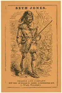 In 1860, the publishers Erastus and Irwin Beadle released a new series of cheap paperbacks, Beadle's Dime Novels.[1] Dime novel became a general term for similar paperbacks produced by various publishers in the early twentieth century. The first book in the Beadle series was Malaeska, the Indian Wife of the White Hunter, by Ann S. Stephens, dated June 9, 1860.[1] The novel was essentially a reprint of Stephens's earlier serial, which had appeared in the Ladies' Companion magazine in February, March and April 1839. It sold more than 65,000 copies in the first few months after its publication as a dime novel.[2] Dime novels varied in size, even in the first Beadle series, but were mostly about 6.5 by 4.25 inches (16.5 by 10.8 cm), with 100 pages. The first 28 were published without a cover illustration, in a salmon-colored paper wrapper. A woodblock print was added in issue 29, and the first 28 were reprinted with illustrated covers. The books were priced, of course, at ten cents.