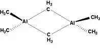 Organoaluminium complexes can exist as either monomers or dimers based on the steric bulk of the groups attached. For example, methyl or ethylaluminium exists as a dimer, but when a bulkier group is added, the complex exists as a monomer, such as trimesitylaluminium.[6]
