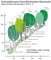 Mixed deciduous-silver fir peony (Paeonia daurica Andrews)-forests with Paeonia daurica' have the most species rich composition found so far on Orjen (Abies alba, Corylus colurna, Fraxinus excelsior, Fagus sylvatica, Acer intermedium, Tilia cordata, Acer pseudoplatanus, Pinus heldreichii).