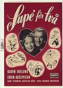 Dinner for Two (Swedish: Supé för två) is a 1947 Swedish romantic comedy film directed by Ragnar Arvedson and starring Edvin Adolphson, Karin Ekelund and Gaby Stenberg.[1] It was shot at the Centrumateljéerna Studios in Stockholm. Location shooting took place around Cannes and Nice. The film's sets were designed by the art director Hannu Leminen. It was based on a play by André-Paul Antoine, which had previously been adapted into the 1943 French film The Inevitable Monsieur Dubois.