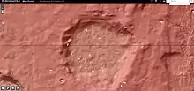 Dinorwic is a Martian impact crater, approximately 56 kilometers in diameter. It is located on the planet Mars at 30.4°S, 101.6°W, northeast of the crater Virrat and north of the crater Tugaske. To the northeast of Dinorwic is the crater Caxias, and farther north is the crater Llanesco. It is named after the town in Ontario, Canada. Its name was approved by the International Astronomical Union in 1991.[1][2] According to a surface age map of Mars based on US Geological Survey data, the area around Dinorwic is from the Noachian epoch, which places the area's age at 3.8 to 3.5 billion years ago.[3] At the crater's rim, it is about 7,600 meters above zero altitude, and it is about 5,950 meters above zero altitude at its floor, giving it a depth of 1.6 kilometers.[2]