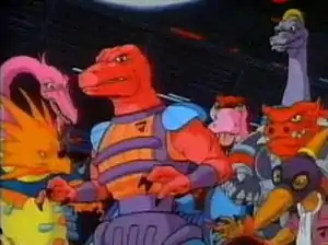 Dinosaucers is a 1987 animated television series co-produced in the United States, produced by DIC Animation City and distributed in syndication in the US by Coca-Cola Telecommunications. The show was created by producer Michael E. Uslan, who considered it a "harebrained idea".[1] A total of 65 episodes were made for the show's first-run syndication, but it only lasted one season.[2]