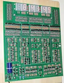 Up until 1952, IBM manufactured transistors by modifying off-the-shelf germanium diodes, after which they had their own alloy-junction transistor manufacturing plant at Poughkeepsie.[2][3] In the mid 1950s, diode logic was used in the IBM 608 which was the first all-transistorized computer in the world. A single card would hold four two-way circuits or three three-way or one eight-way. All input and output signals were compatible. The circuits were capable of reliably switching pulses as narrow as one microsecond.