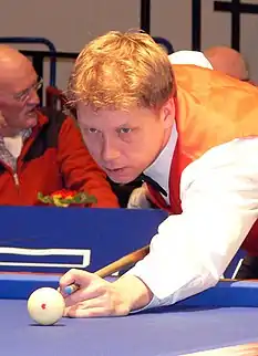 Dion Nelin (born 28 August 1976)[1] is a Danish carom billiards player.[2][3][4][5] He won twice at the Three-Cushion World Cup from 1996 to 1997.[1] Nelin got into second place three times and third place five times at the Three-Cushion World Cup from 1995 to 2000.[1] He placed second place at the UMB World Three-cushion Championship in 2002.[1] Nelin was preferred as a best ranked player in Danish, according to the cited Kozoom article.[6] Dan Johansen had helped out Nelin.[7] He spend his summer with a working job,[8] in which Nelin was participant of the Danish Championship.[9]