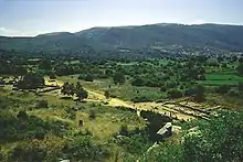 By the time of Strabo, Dione was worshiped at a sacred grove near Lepreon on the west coast of the Peloponnesus.[6] She was also worshiped as a consort at the temples of Zeus,[7] particularly his oracle at Dodona[8] (perhaps the original, Indo-European consort of Zeus). Herodotus called this the oldest oracle in Greece and recorded two related accounts of its founding: the priests at Thebes in Egypt told him that two priestesses had been taken by Phoenician pirates, one to Libya and the other to Dodona and continued their earlier rites; the priestesses of Dodona claimed that two black doves[9] had flown to Libya and Dodona and commanded the creation of oracles to Zeus.[10] Homer[11] and Herodotus both make Zeus the principal deity of the site, but some scholars propose Dodona originally served as a cult center of an earth goddess.