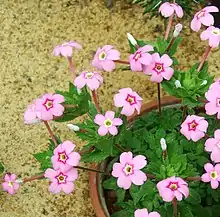 Dionysia is a genus containing 49 species of flowering plants in the family Primulaceae. They are small, cushion-forming alpines native to mountains in central Asia. They are usually evergreen perennials with felted leaves, covered with bright yellow or pink, five-petalled flowers in spring.[1] They are often difficult to cultivate if the correct conditions are not provided.[2]