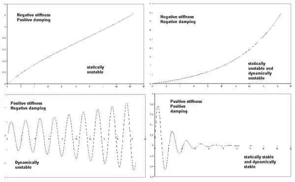 The form of the solution depends only on the signs of the damping and stiffness terms. The four possible solution types are presented in the figure.
