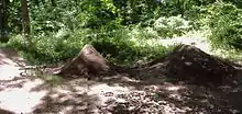 • Berm a curved embankment that comes out of the ground. Mostly used on sharp turns, berms assist riders by giving them the ability to bank sharply, and make a sharper turn. Mainly used on downhill trails, but can also be present alongside dirt jumps to help riders avoid hitting trees. They are also used to maintain riders' speed without having to brake on turns. Some trails consist of jumps that lead into berms.