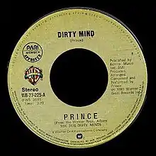 "Dirty Mind" is the follow-up single in the U.S., and title track to Prince's third album, released in 1980.[2] The song is built around a keyboard riff created by Doctor Fink, which dominates the song. The demo-like song lacks a chorus, and is a stark departure of the smooth R&B sound of Prince's first two albums. The lyrics concern sexual thoughts, which are fairly representative of the other songs from the album. The single's B-side is the ballad "When We're Dancing Close and Slow", from the previous year's Prince. "Dirty Mind" reached number sixty-five on the soul chart.[3] Along with the tracks "Uptown" and "Head", "Dirty Mind" reached number five on the dance chart.[4]