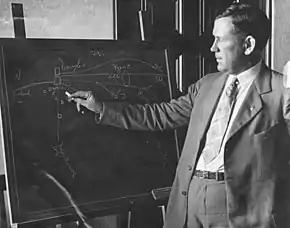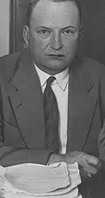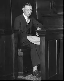 As McPherson's accused lover who allegedly assisted in the kidnapping fraud, Ormiston was a prominent defendant in the 1926 grand jury inquiry. He had been McPherson's radio operator and was crucial in getting her programs on the air. He was described as about 5 feet 11 inches (180 cm) tall, bald, slender, and good-natured with a wonderful disposition.[98] He also had a distinctive limp that frequently identified him more than any other feature. During the time of McPherson's disappearance, newspapers freely speculated about him and the Los Angeles DA office initiated various manhunts accompanied by front-page headlines, searching for the elusive radioman.[99] Though the Los Angeles prosecution and two city newspapers spent lavishly to romantically connect McPherson with Ormiston, no conclusive evidence that they were lovers could be uncovered.[100] To some law enforcement officials outside of Los Angeles, the pursuit of Ormiston was done for publicity.[101][102][103]