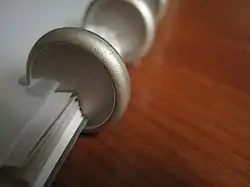 Disc-binding is a type of notebook binding that uses discs to hold the sheets of paper. Each disc has a raised edge. Notebook sheets have perforations along the binding edge that match the profile and spacing of the binding discs.
