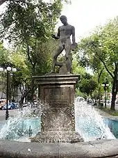 The Discophoros, also spelled Discophorus (Greek – "Discus-Bearer"), was a bronze sculpture by the classical Greek sculptor Polyclitus, creator of the Doryphoros and Diadumenos, and its many Roman marble copies. (It is not, however, to be confused with Discobolus of Myron, which shows a discus being thrown, not carried.)