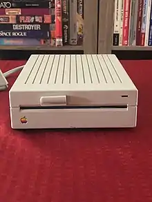 The Disk IIc (A2M4050) was a half-height 5+14-inch floppy disk drive introduced by Apple Computer in 1984 styled for use alongside the Apple IIc personal computer, the only Apple II to contain a 5+14-inch built-in disk drive mechanism. The disk port on the original IIc was only designed to control one additional, external 5+14-inch disk drive, and as such, this particular drive omitted a daisy-chain port in back. It was possible to use it on other Apple II models, so long as it came last in the chain of drive devices (due to lacking a daisy-chain port); but since the Disk IIc was sold without a controller card, the Apple IIc computer needing none, it had to be adapted to an existing Disk II controller card in this case. Essentially the same as the full-height Disk II, Apple sold the Disk IIc for US$329, and other companies later sold similar drives for less.[11]