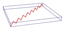 In order to reduce the impact of ASE, an anti-ASE cap consisting of undoped material on the surface of a disk laser has been suggested.[15][16] Such a cap allows spontaneously emitted photons to escape from the active layer and prevents them from resonating in the cavity. Rays cannot bounce (Figure 3) as in an uncovered disk. This could allow an order of magnitude increase in the maximum power achievable by a disk laser.[14] In both cases, the back reflection of the ASE from the edges of the disk should be suppressed. This can be done with absorbing layers, shown with green in Figure 4. At operation close to the maximal power, a significant part of the energy goes into ASE; therefore, the absorbing layers also should be supplied with heat sinks, which are not shown in the figure.
