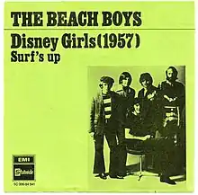 "Disney Girls (1957)" is a song by American rock band the Beach Boys from their 1971 album Surf's Up. It was written and sung by Bruce Johnston, who also plays upright piano, Moog synthesizer, and mandolin.[2] Johnston later rerecorded the song for his 1977 solo album, Going Public.
