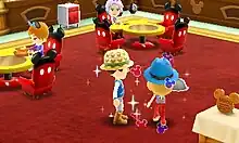 The game uses either a previously made Mii or newly made in-game character to complete quests in the town of Castleton. The game features various activities such as fishing, card collecting, gardening, making clothes and decorating the town's cafe, as well as making the food to be sold. When completing these activities, the player is awarded with stickers which act as a leveling up system, allowing the player to progress further in the game.