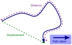 Displacement versus distance travelled along a path