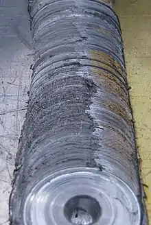 Dissimilar friction stir welding (DFSW) is the application of friction stir welding (FSW), invented in The Welding Institute (TWI) in 1991,[1] to join different base metals including aluminum, copper, steel, titanium, magnesium and other materials.[2] It is based on solid state welding that means there is no melting. DFSW is based on a frictional heat generated by a simple tool in order to soften the materials and stir them together using both tool rotational and tool traverse movements. In the beginning, it is mainly used for joining of aluminum base metals[3] due to existence of solidification defects in joining them by fusion welding methods such as porosity along with thick Intermetallic compounds.[4] DFSW is taken into account as an efficient method to join dissimilar materials in the last decade.[5] There are many advantages for DFSW in compare with other welding methods including low-cost, user-friendly, and easy operation procedure resulting in enormous usages of friction stir welding for dissimilar joints. Welding tool, base materials, backing plate (fixture), and a milling machine are required materials and equipment for DFSW. On the other hand, other welding methods, such as Shielded Metal Arc Welding (SMAW) typically need highly professional operator as well as quite expensive equipment.