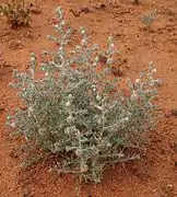 The species is synonymous with Bassia paradoxa, Chenolea paradoxa and Sclerolaena paradoxa.[6] Dissocarpus paradoxus is in the Saltbush family, a large plant family containing many important food crops, with most species of the family occurring in areas with soils that contain a high concentration of inorganic salts.[3] Sometimes the Saltbush family Chenopodiaceae, is included as a subfamily within the family Amaranthaceae.[3] The two families Chenopodiaceae and Amaranthaceae are related, and in Australia are often referred to as 'cheno-ams' [5] In Australia there is documented use of the leaves and seed of cheno-ams as a food resource, by various Indigenous groups.[5]