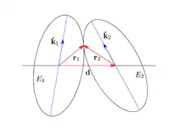 - unit vector joining the centers of the two ellipses.