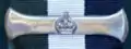 - The ribbon bar denoting a further award is plain silver, with convex ends and a central crown.