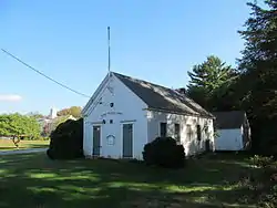 The District 7 School is a historic one-room schoolhouse at 565 Main Street in Hanson, Massachusetts. The single-story wood-frame structure was built in 1845, and is the town's oldest surviving schoolhouse. It has two entry doors to anterooms which lead to the main schoolroom. The building was enlarged, apparently in 1882, when it was also moved across the street from its original location. It was moved again in 1939, to a position adjacent to the Thomas Elementary School, where it was used as a "portable" classroom. Finally, in 1963 it was moved to its present location, and has served since as a museum and meeting space operated by the local historical society.[2]