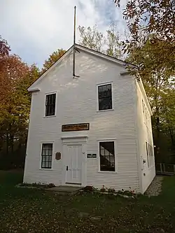 The school was built in 1861, as a single-story structure, and was the third school building to stand on the site. Of the town's fifteen district schools, it is now the only surviving one still in public hands. The building's second story was added in 1915, and it served as a school until a fire in its wood stove caused significant interior damage. The building was thereafter used by the town for storage and as a garage, adding a garage door to the front. In 1983, the building was taken over by the local historical society, which undertook a partial restoration of the building to its early 20th-century appearance. Because the restoration was not completed, the building again deteriorated, and a renewed drive is underway to make it fully usable as a community space.[2]