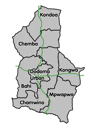 | Kongwa District | Rural | 336,888 | 3,958 km2 (1,528 sq mi) | District website | |