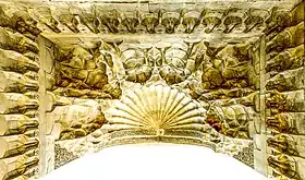 The western arcade is dominated by a dynamic portal. Its sleeve includes a sophisticated semi-arched stalactite complex system. A timpani on the entrance door is covered with ornaments on the surface of the stone. The severity of the portrait of the portal is more noticeable than the elegance of the ornament. Ş. Fatullayev-Fikarov noted that "this is not the architectural philosophy of the Eastern art, which is derived from the depth of development processes of classical speeds, but not the portals composition of the Absheron architecture, which is merely at the level of excellence."[5]