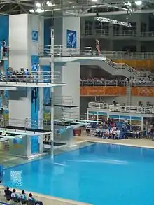 At the 2004 Summer Olympics, in Athens, eight diving events were contested during a competition that took place at the Olympic Aquatic Centre, from 20 to 28 August (14 and 16 August for the synchronized events),[1] comprising a total of 129 divers from 30 nations.[2]
