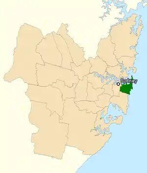 ![]() Division of Wentworth in New South Wales, as of the 2016 federal election. | |